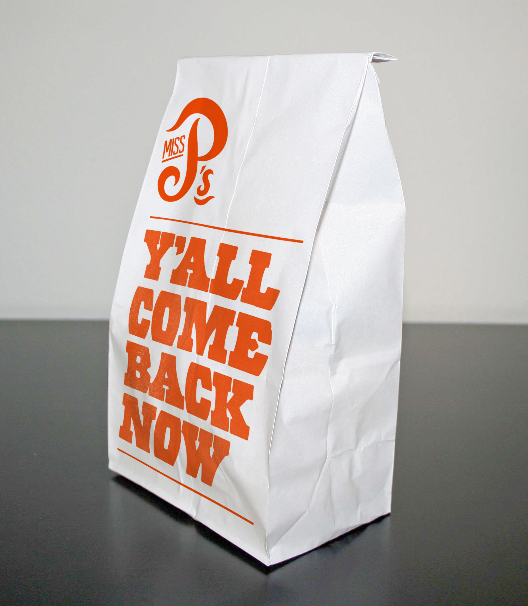I worked closely with the client to help them establish a brand narrative, tone and copy style for Miss P's which was present in all restaurant-branded customer-facing material from menus, packaging and branded promotional giveaway items.